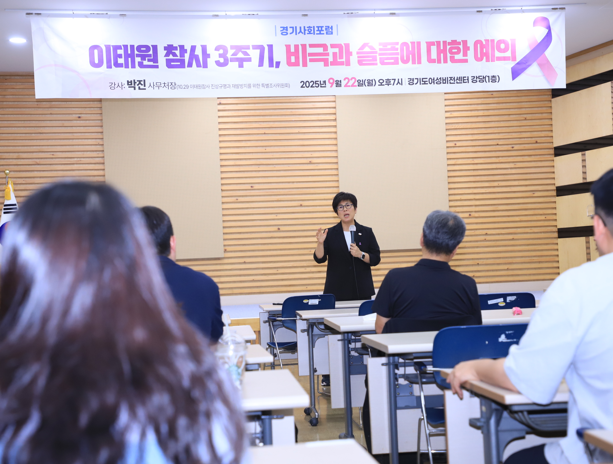 지난 9월 22일(월) 오후7시 경기도여성비전센터 강당에서 경기지역 활동가 40여명이 참여한 가운데 경기사회포럼이 진행되었습니다. 이번 경기사회포럼은 '이태원 참사 3주기, 비극과 슬픔에 대한 예의'라는 주제로 10.29 이태원참사 진상규명과 재발방지를 위한 특별조사위원회 박진 사무처장을 모시고 참사를 둘러싼 논쟁과 향후 과제에 대한 이야기를 나누는 시간이었습니다. 강연내용을 요약하면 아래와 같습니다. 1. 참사의 의미와 피해자 인식 이태원 참사는 단순한 ‘불운한 사고’가 아니라 국가와 사회의 무계획과 부실한 대응이 만든 재난임. 피해자에 대한 2차 가해(“거길 왜 갔어?”, “운이 나빴다”)는 잘못된 사회적 태도이며, 이는 피해자의 고통을 왜곡하고 책임을 개인에게 전가하는 행위임. 피해자는 특별한 존재가 아니라 누구나 될 수 있는 사람이라는 점에서 존엄과 권리를 중심으로 접근해야 함. 참사는 현장에서 끝나지 않고, 피해자와 유가족의 일상과 사회 속에서 지속적으로 이어짐. 2. 피해자 중심 접근과 사회적 책임 국가와 사회가 책임을 다한 이후에야 비로소 개인의 책임을 논할 수 있음. 피해자 지원과 권리 보장은 법과 제도로 보장되어야 하며, 재난 대응 전 과정에서 피해자 관점이 반영되어야 함. 한 사람의 죽음을 통계가 아닌 개별적 존엄의 상실로 기억해야 함. 3. 애도와 기억 참사 이후 필요한 것은 단순한 추모가 아니라 기억을 행동으로 이어가는 사회적 애도임. “망각에 저항하는 예술”, 추모 공간, 공동 캠페인 등은 사회적 책임을 일깨우는 중요한 장치. “다시는 일어나지 않도록” 하기 위해 재난의 원인과 대응 실패를 기록하고 교육해야 함. 4. 정부의 책임과 한계 참사 당시 정부는 피해자와 유족을 직접적으로 돌보지 않았으며, 오히려 음모론과 책임 회피가 확산됨. 대통령과 정부의 관심사(예: 마약 단속)는 있었으나, 재난 예방과 안전 관리에 대한 지도력과 리더십 부재가 드러남. 피해자들이 스스로 모여 연대해야 했던 현실은 국가의 부재를 보여줌. 5. 시민사회의 과제 피해자의 곁에 서서 슬픔을 함께하는 태도 필요 (“괜찮다”라는 말 대신 곁에 있기). 타인의 고통에 대한 공감은 훈련과 공부를 통해 가능하며, 사회 구성원 모두가 ‘슬픔을 공부하는’ 자세를 가져야 함. 재난은 언제든 다시 일어날 수 있으며, 이를 막기 위해 기억, 제도 개선, 시민 참여가 결합되어야 함. | ||